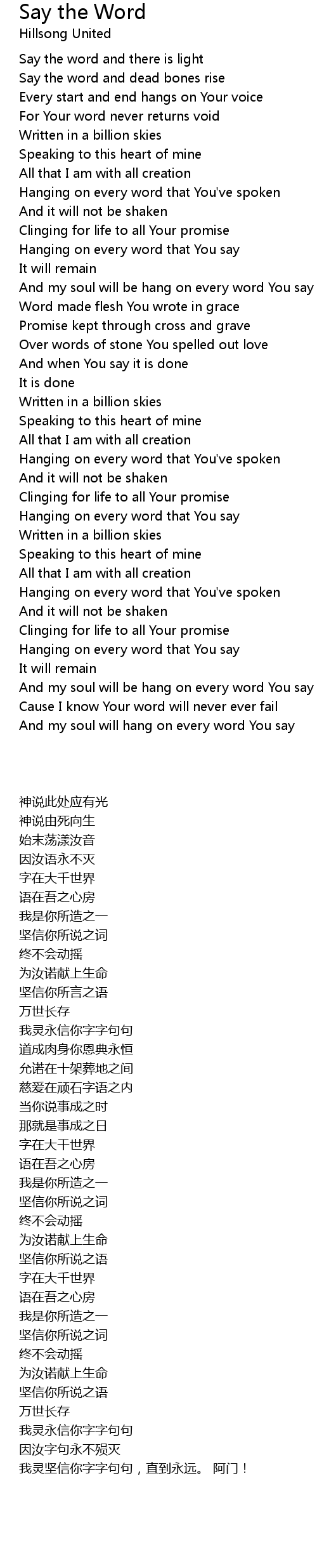 Hanging on every word that You've spoken |
