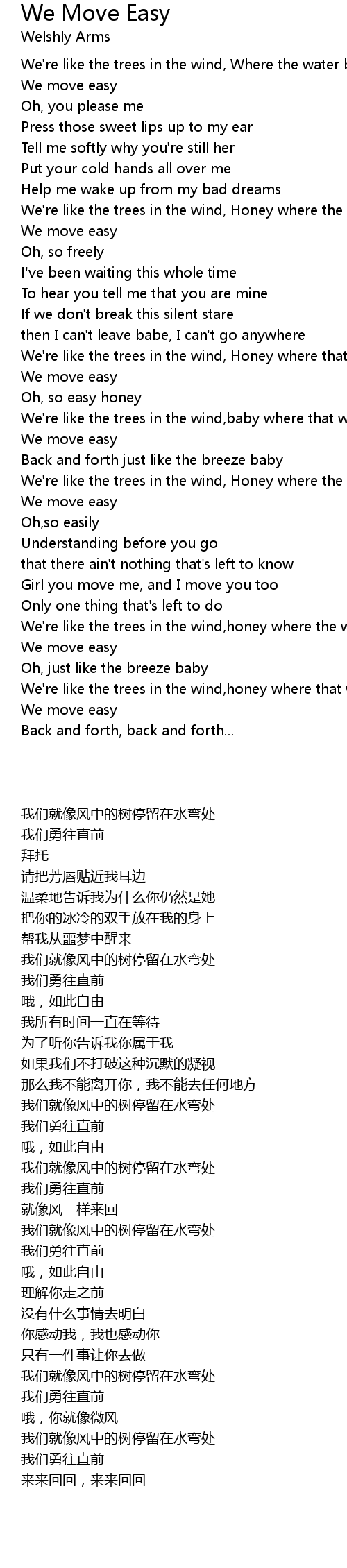 We're like the trees in the wind,baby where that water bends |