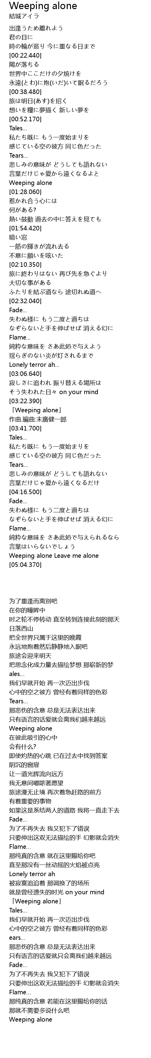 | [02:12.920] | 旅途漫无止境 再次着急赶路的前方 |