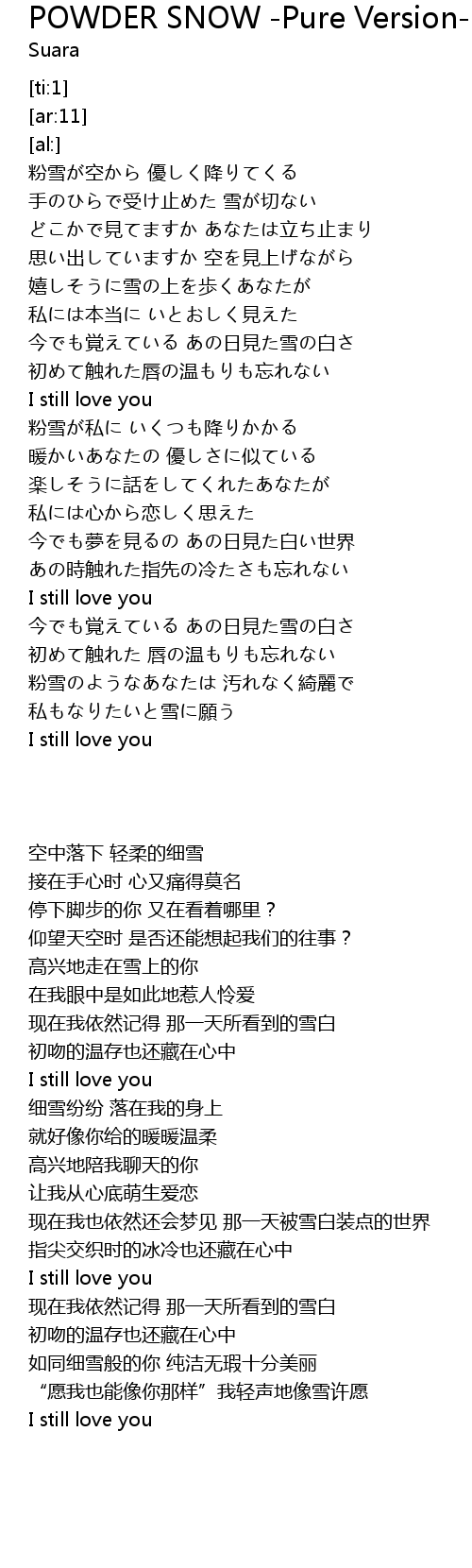 | [04:22.61] | 如同细雪般的你 纯洁无瑕十分美丽 |