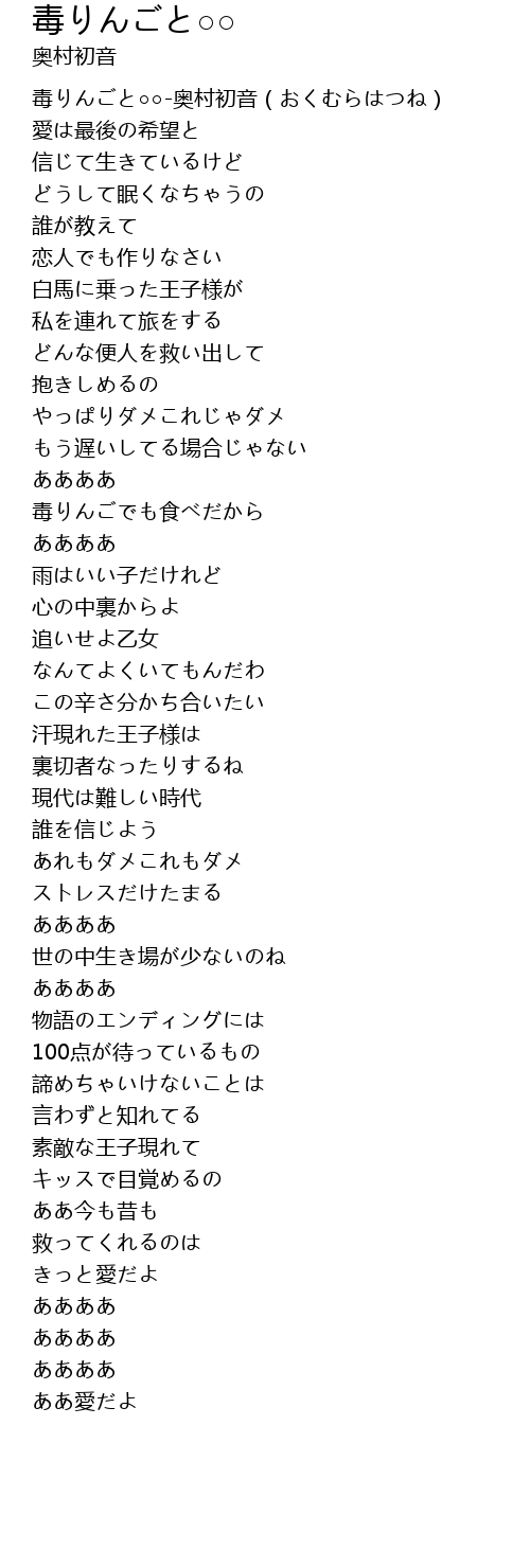 | [00:00.705] | 毒りんごと○○-奥村初音(おくむらはつね) |