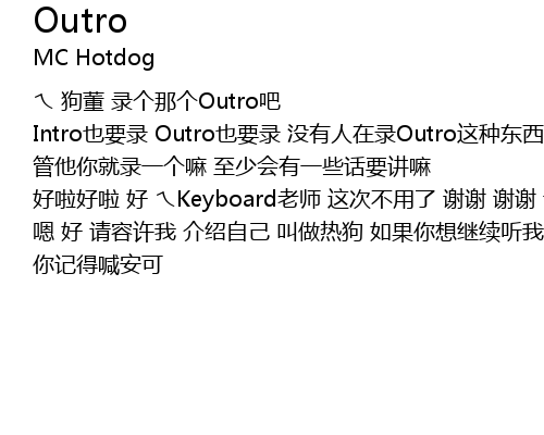 | Intro也要录 Outro也要录 没有人在录Outro这种东西啦 | |