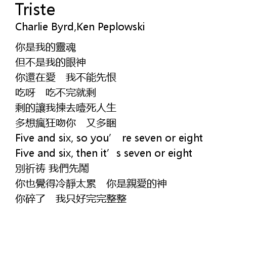 | [01:55.80] | Five and six, then it' s seven or eight |