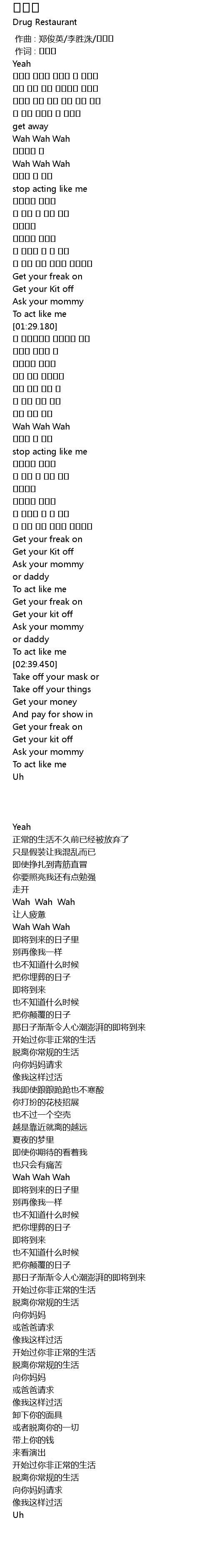 | 歌手 | Drug Restaurant |
