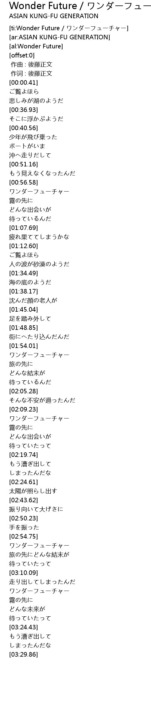 | [03:00.39] | ワンダーフューチャー |