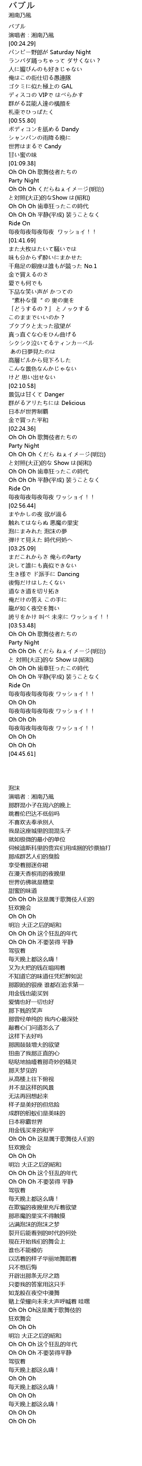 | 歌曲 | バブル |