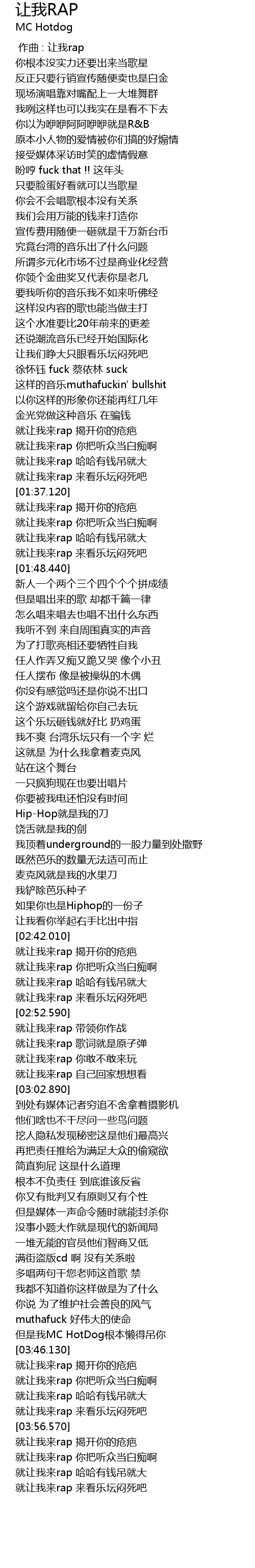 | [03:43.110] | 但是我MC HotDog根本懒得吊你 |