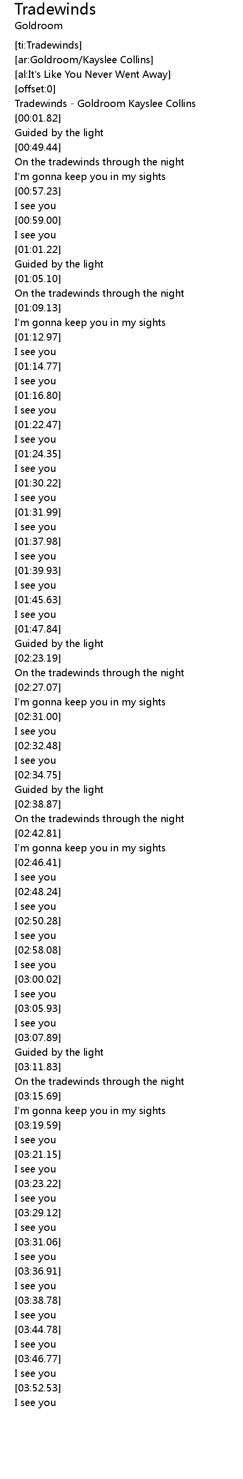 [00:00.72] Tradewinds - Goldroom Kayslee Collins