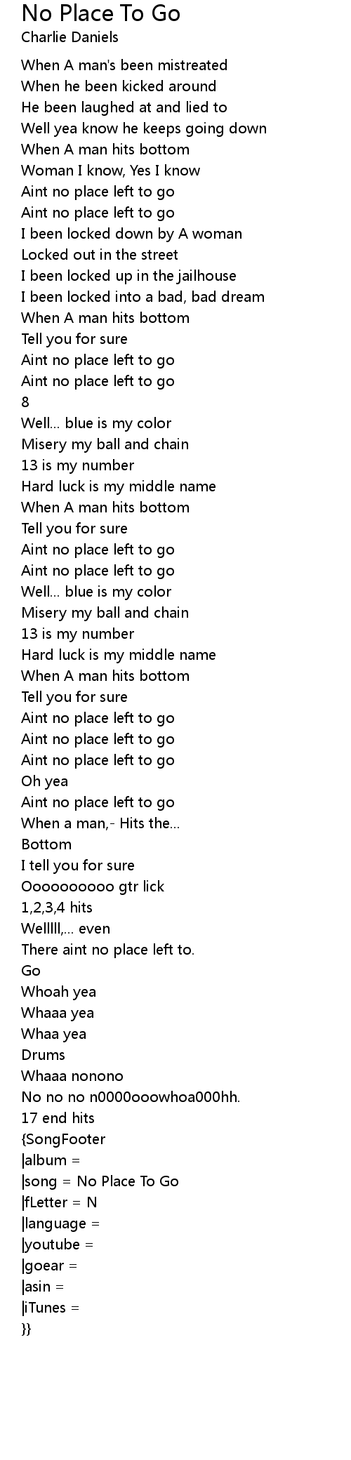 |song = No Place To Go |