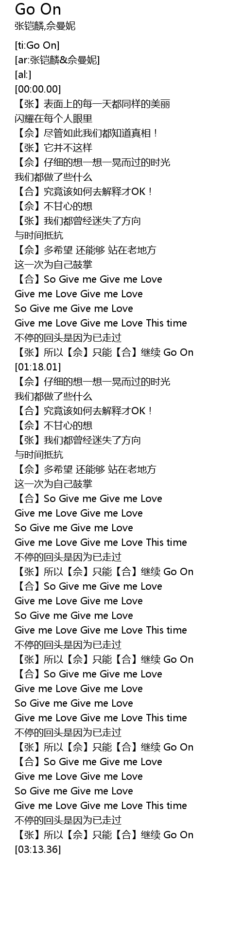 | [02:50.96] | 【张】所以【佘】只能【合】继续 Go On |