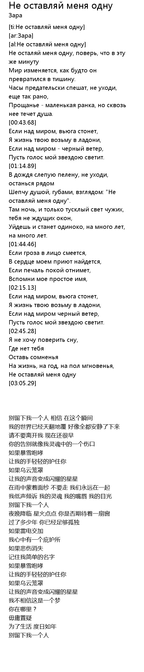 | [00:16.40] | Не осталяй меня одну, поверь, что в эту же минуту |