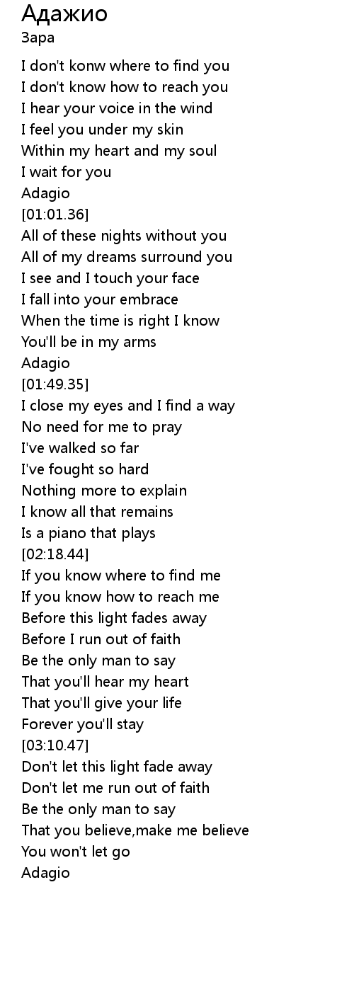 Адажио 歌词