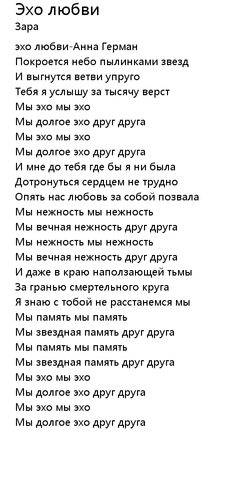 Эхо любви 歌词