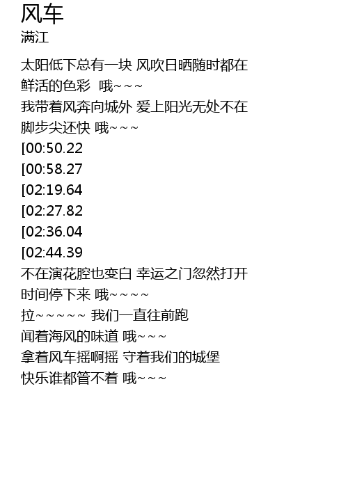 | [03:24.69][02:36.04][01:22.73] | 拿着风车摇啊摇 幸福开始前一秒 |