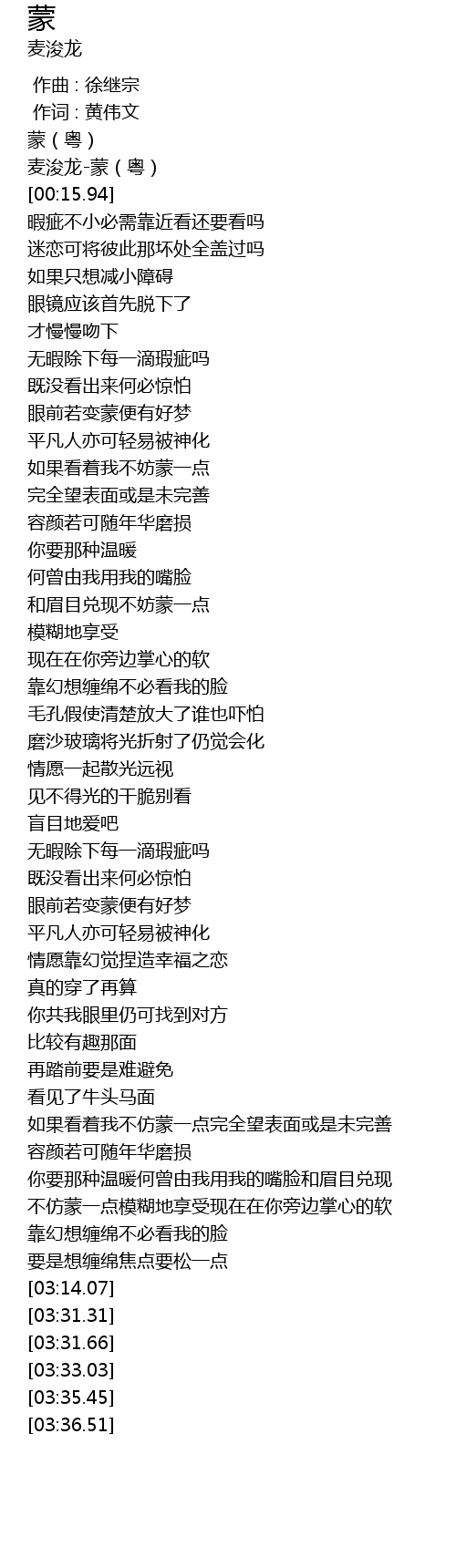 | [00:14.30] | 麦浚龙-蒙(粤) |