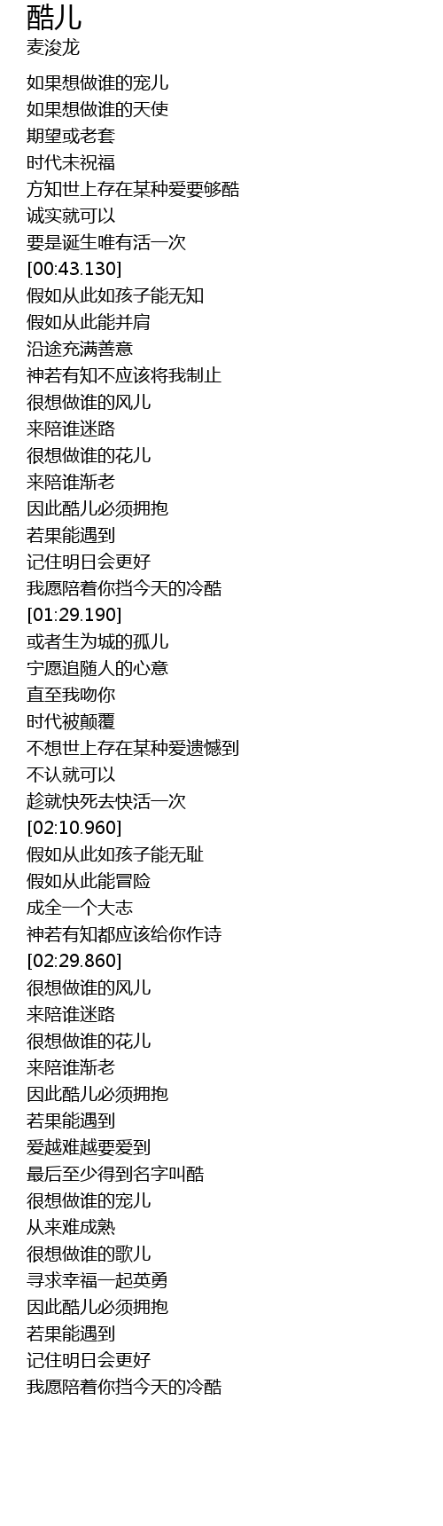 | [03:18.840] | 最后至少得到名字叫酷 |