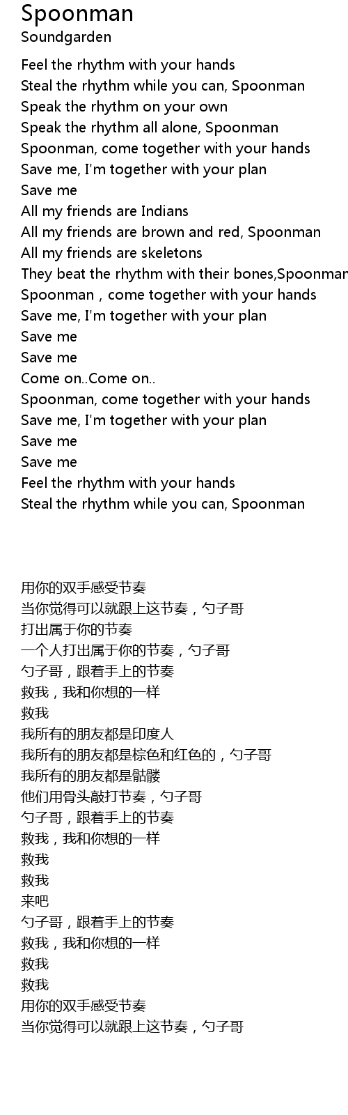 | [00:31.58] | Speak the rhythm all alone, Spoonman |
