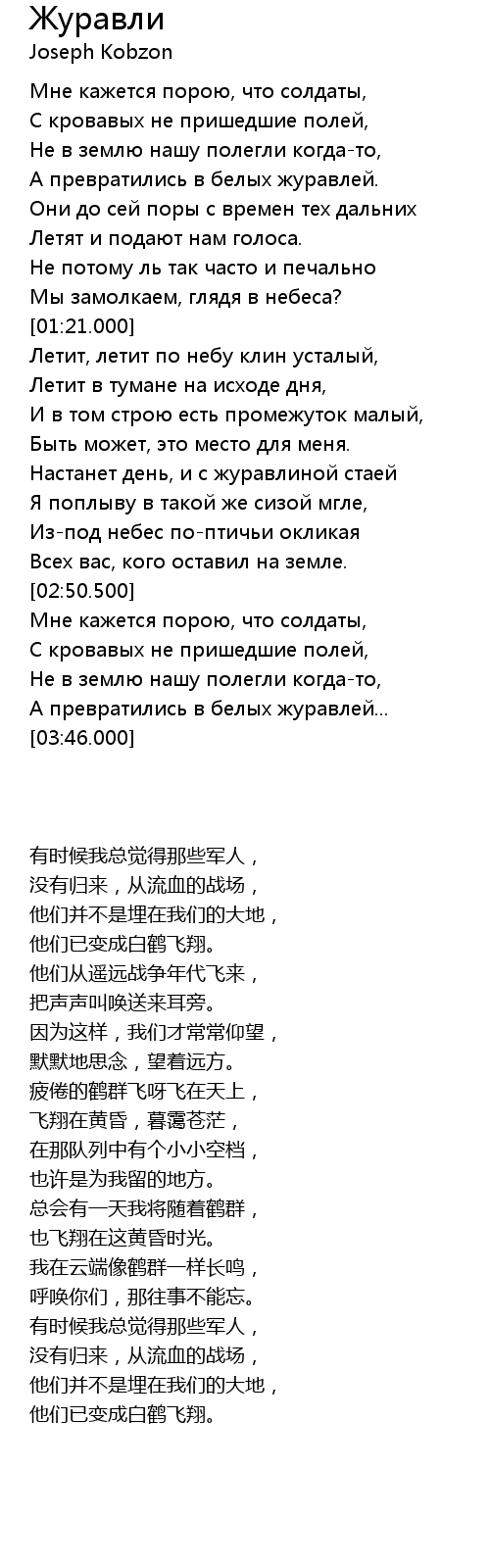 | [02:17.000] | Настанет день, и с журавлиной стаей |