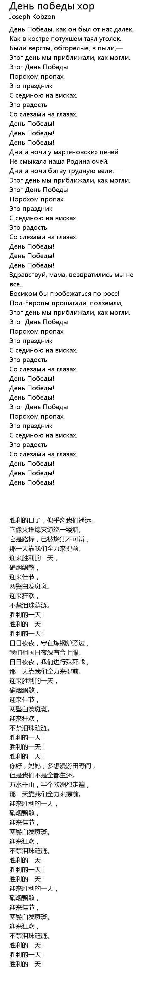 | 歌曲 | День победы хор |
