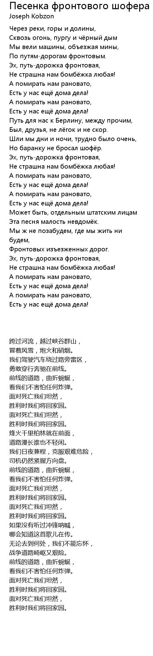 | 歌曲 | Песенка фронтового шофера (с хором) |