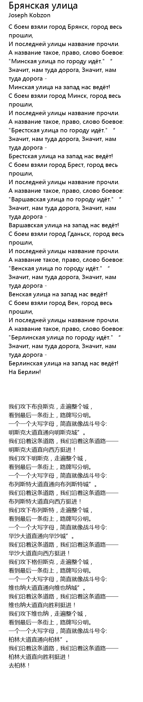 | [00:03.17] | 我们攻下布良斯克,走遍整个城, |