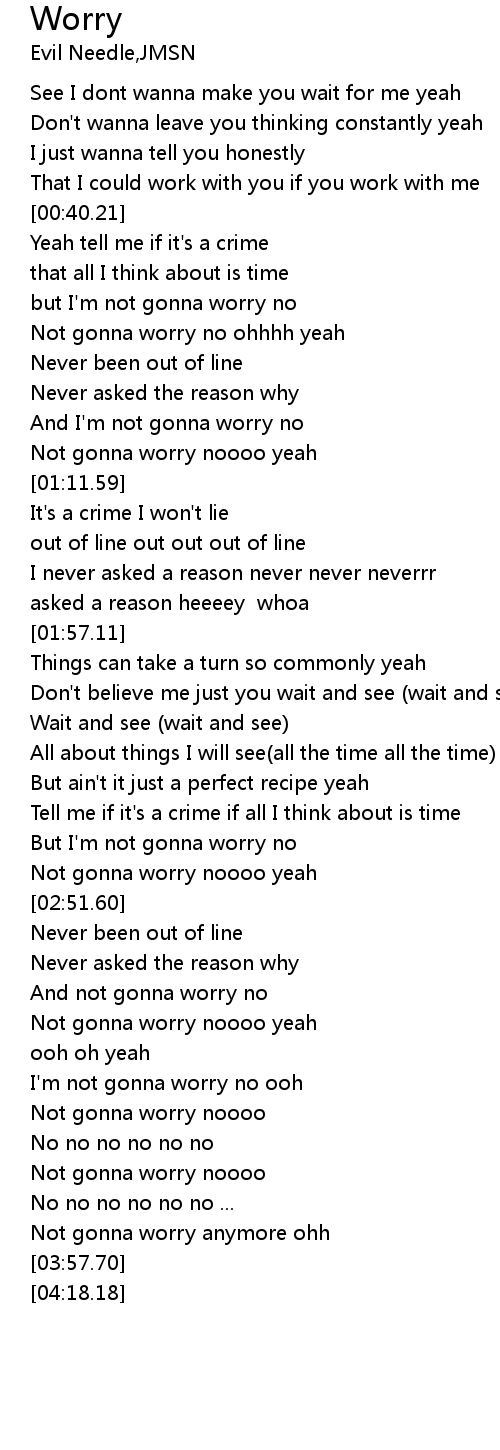 | [00:53.57] | Not gonna worry no ohhhh yeah |