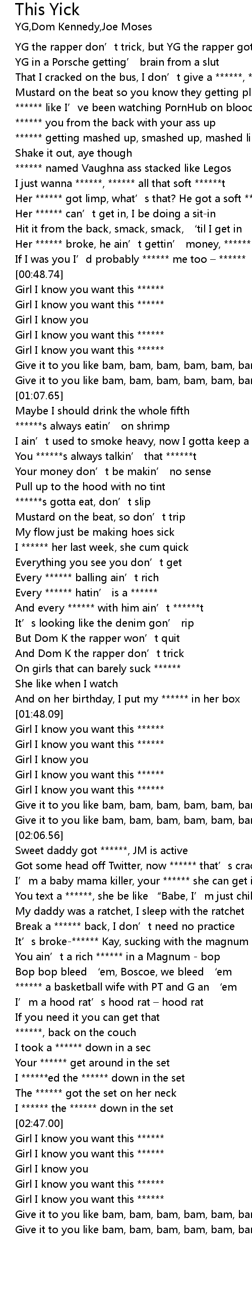 | [00:00.00] | YG the rapper don’t trick, but YG the rapper got ****** |