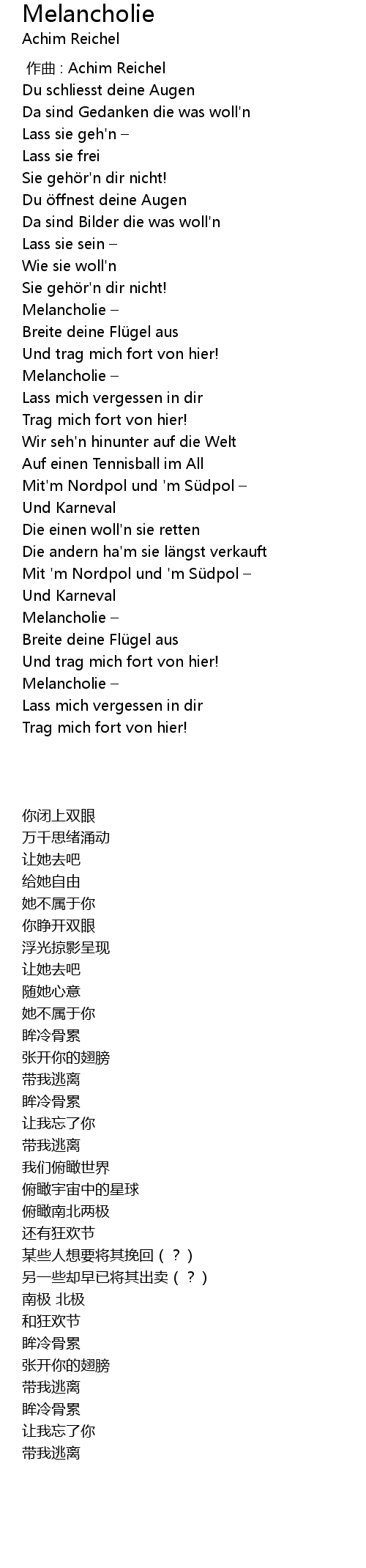 | 歌曲 | Melancholie |