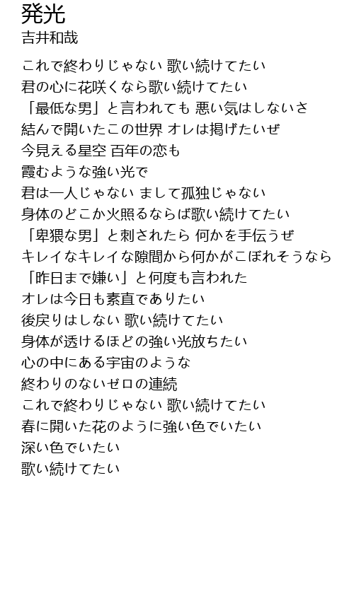 | 身体のどこか火照るならば歌い続けてたい | |