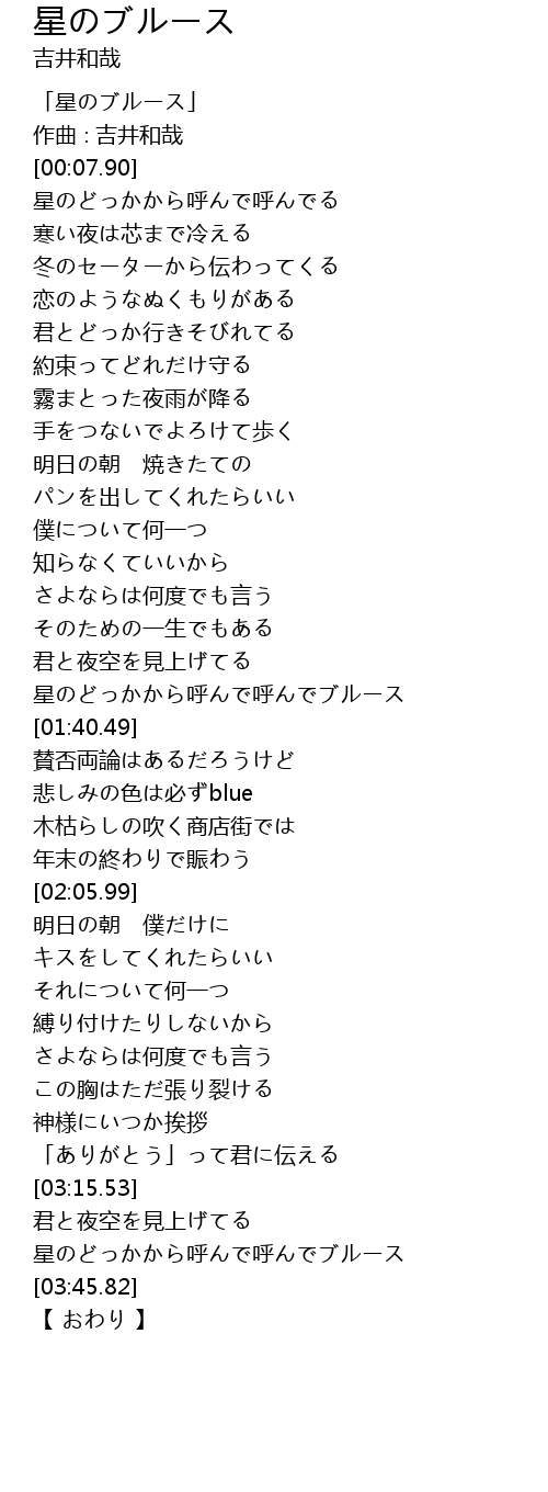 | [03:38.41] | 星のどっかから呼んで呼んでブルース |