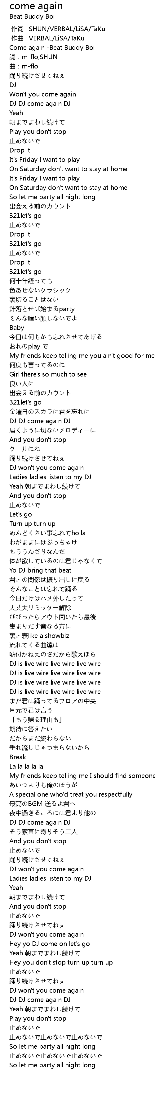 | [00:00.370] | Come again -Beat Buddy Boi |