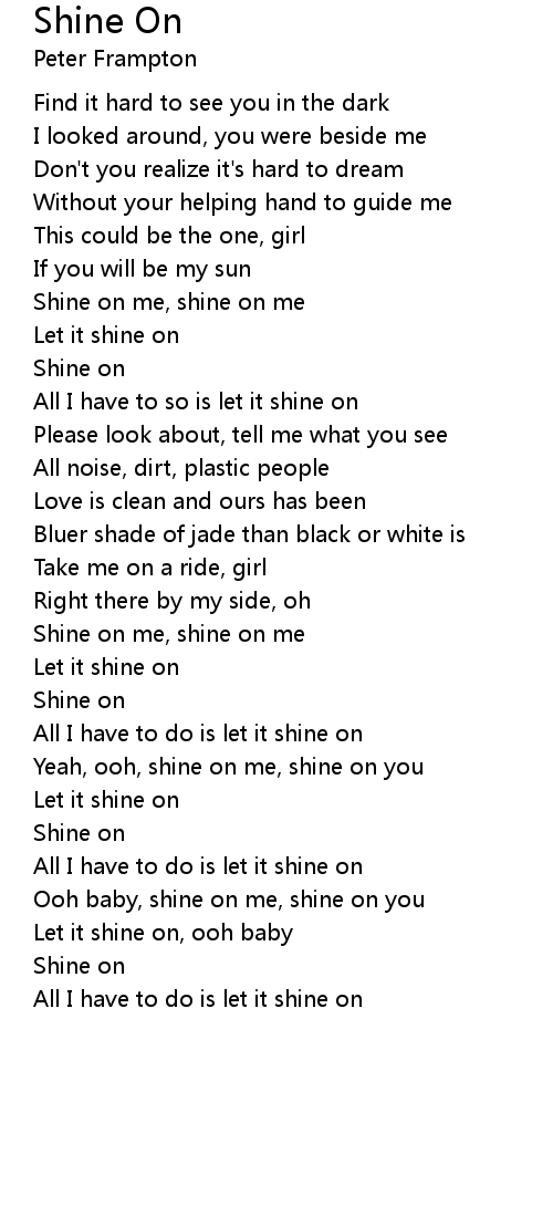 All I have to so is let it shine on |