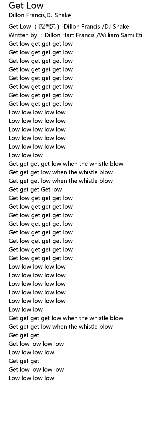 | [00:00.00] | Get Low (我消沉)-Dillon Francis /DJ Snake |