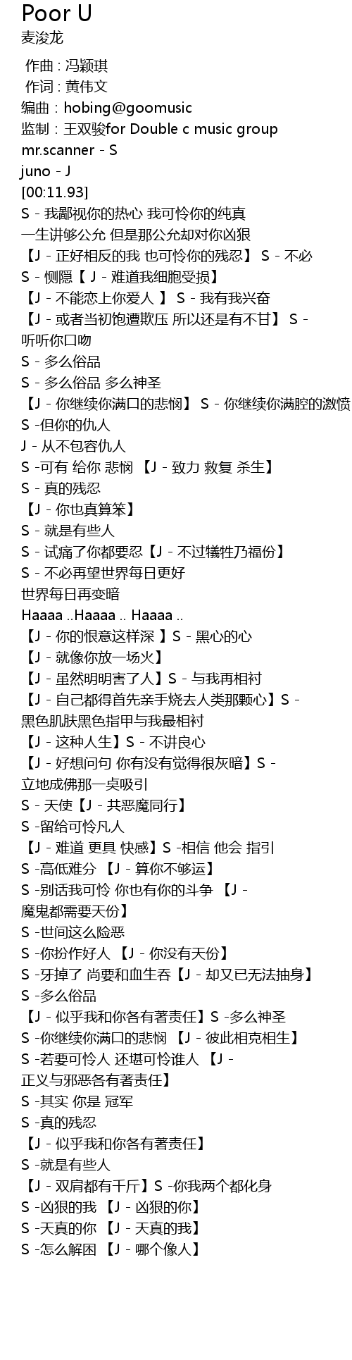 | [03:00.19] | S ruo yao ke lian ren hai kan ke lian shui ren J zheng yi yu xie e ge you zhe ze ren |