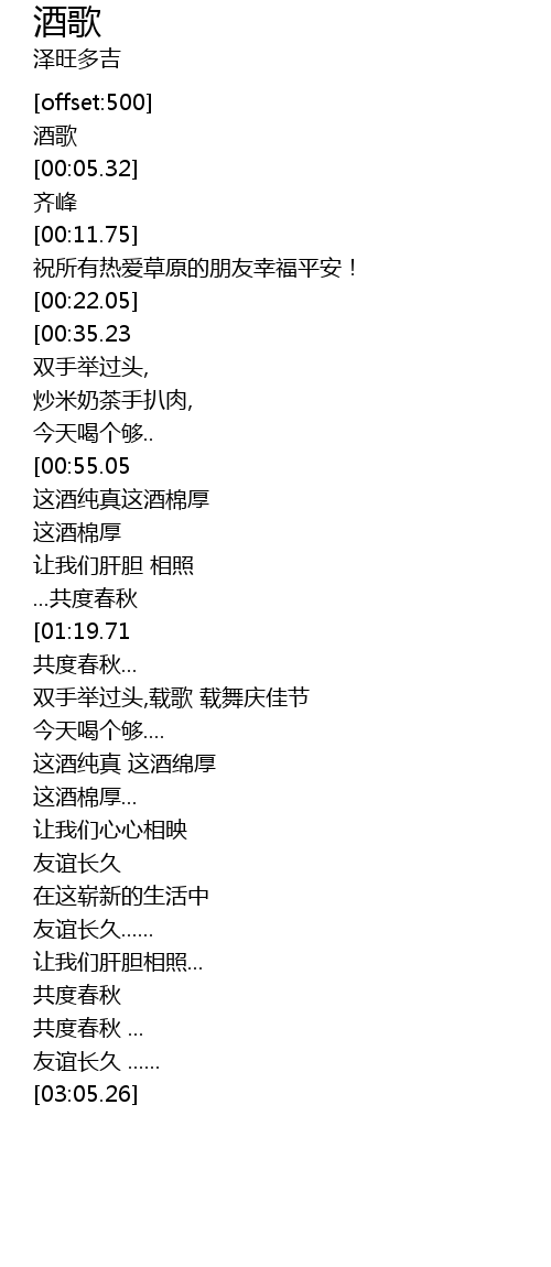 | [01:03.90] | 这酒纯真这酒棉厚 |