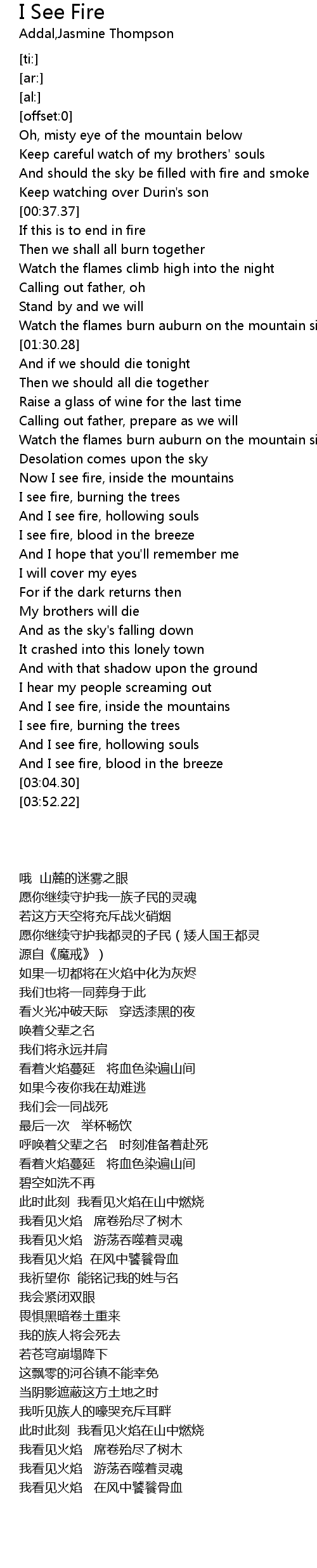 And I see fire, inside the mountains |