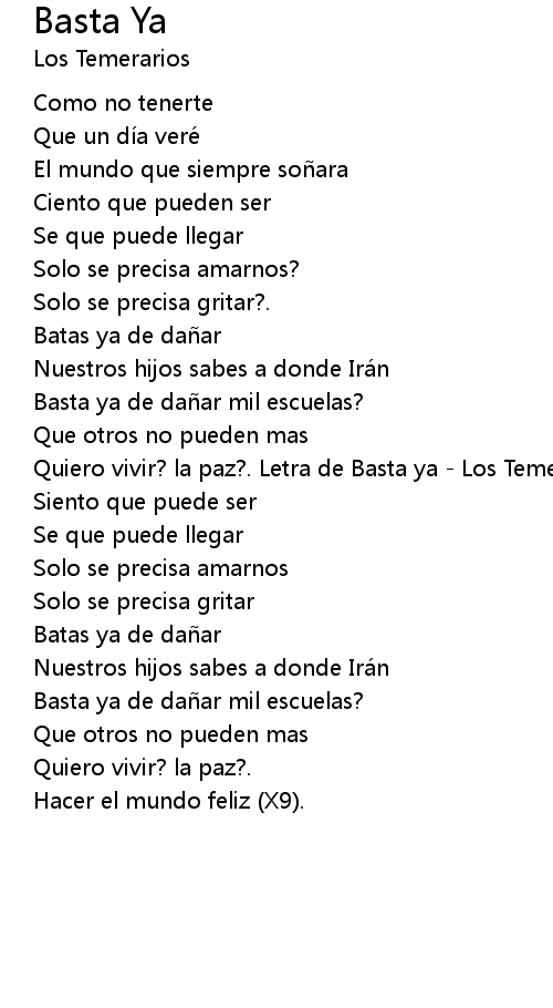| Quiero vivir? la paz?. Letra de Basta ya - Los Temerarios - sitiodeletras.com | |