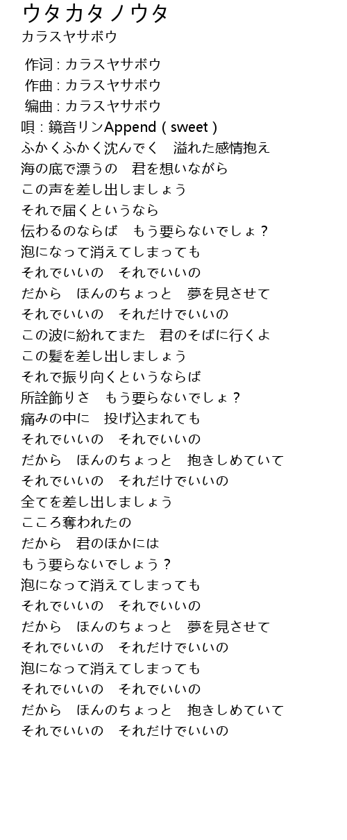 | [00:00.000] | 作词 : カラスヤサボウ |