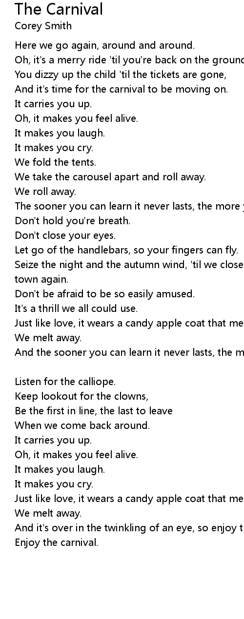 The sooner you can learn it never lasts, the more you'll enjoy the carnival. |