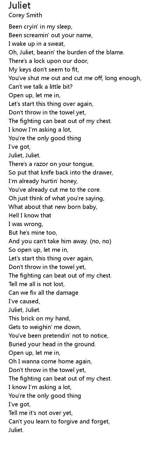 Oh, Juliet, bearin' the burden of the blame. |