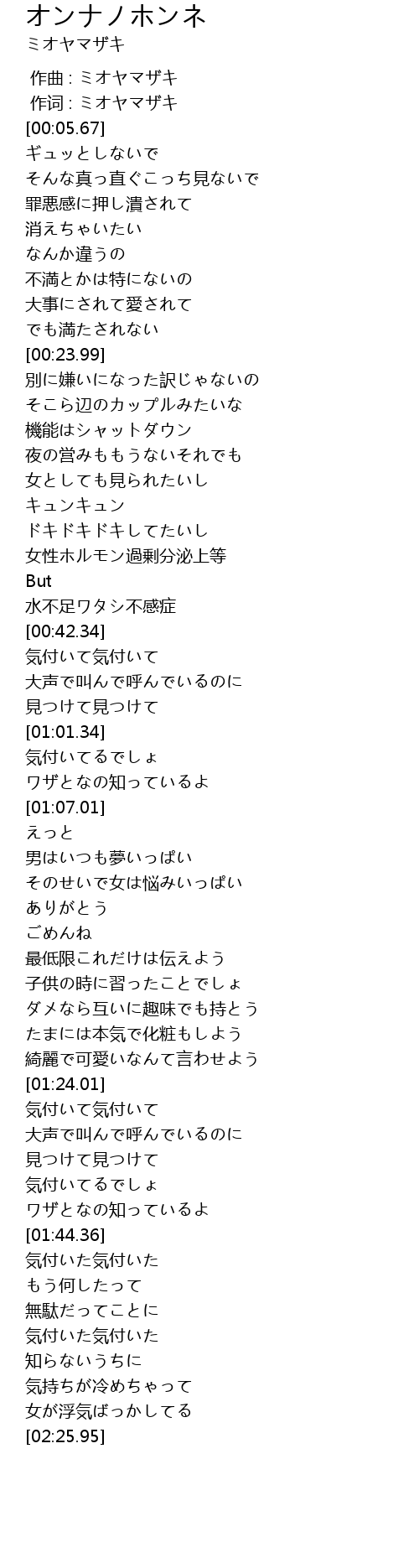 | [00:01.00] | 作词 : ミオヤマザキ |
