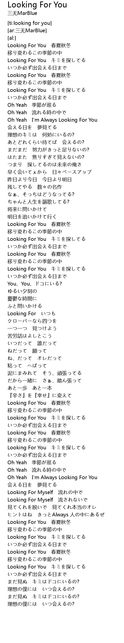 | [03:03.16] | Looking For You キミを探してる |