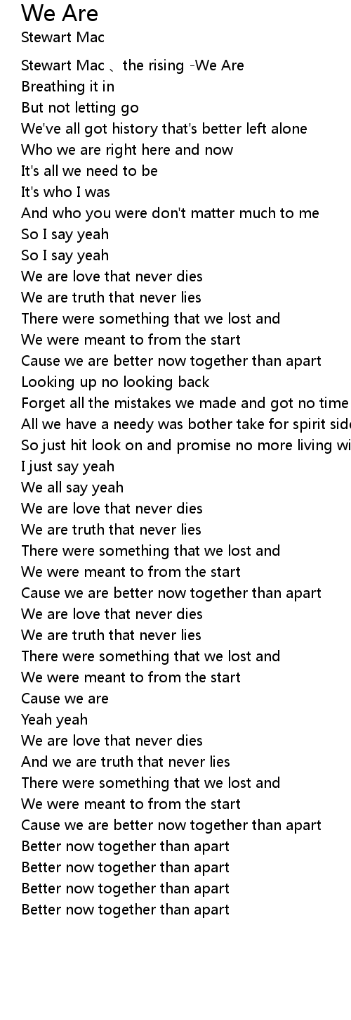 | [00:00.80] | Stewart Mac 、the rising -We Are |