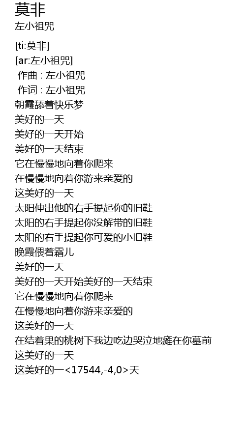 | [00:00.00] | 作曲 : 左小祖咒 |