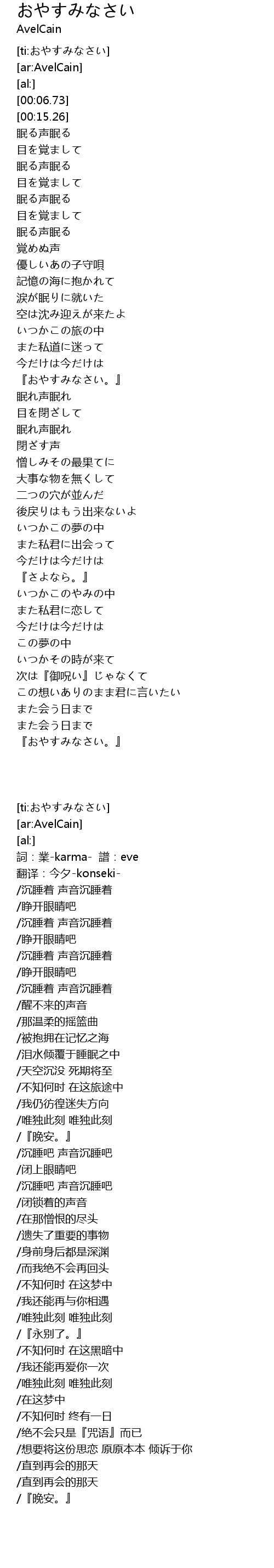 [ti:おやすみなさい] |