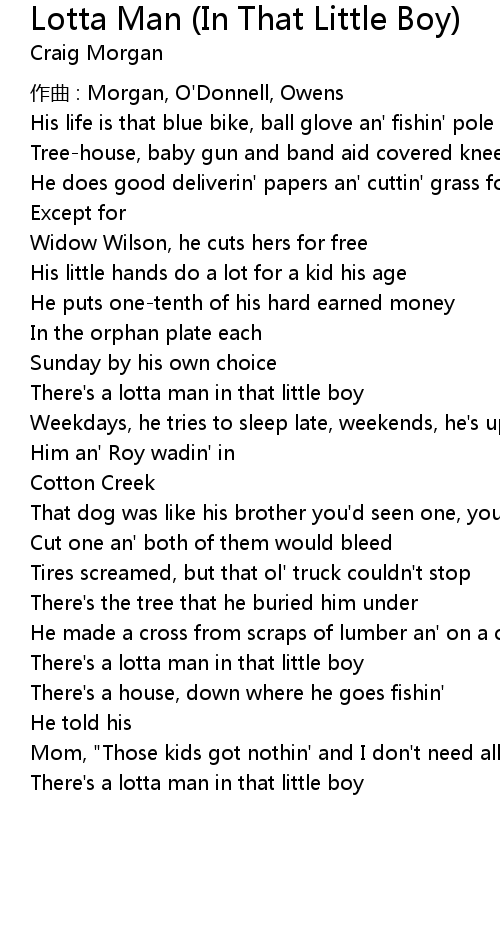 | 歌曲 | Lotta Man (In That Little Boy) |
