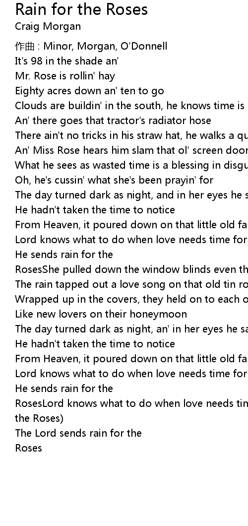 | RosesLord knows what to do when love needs time for growin'(He sends rain for the Roses) | |