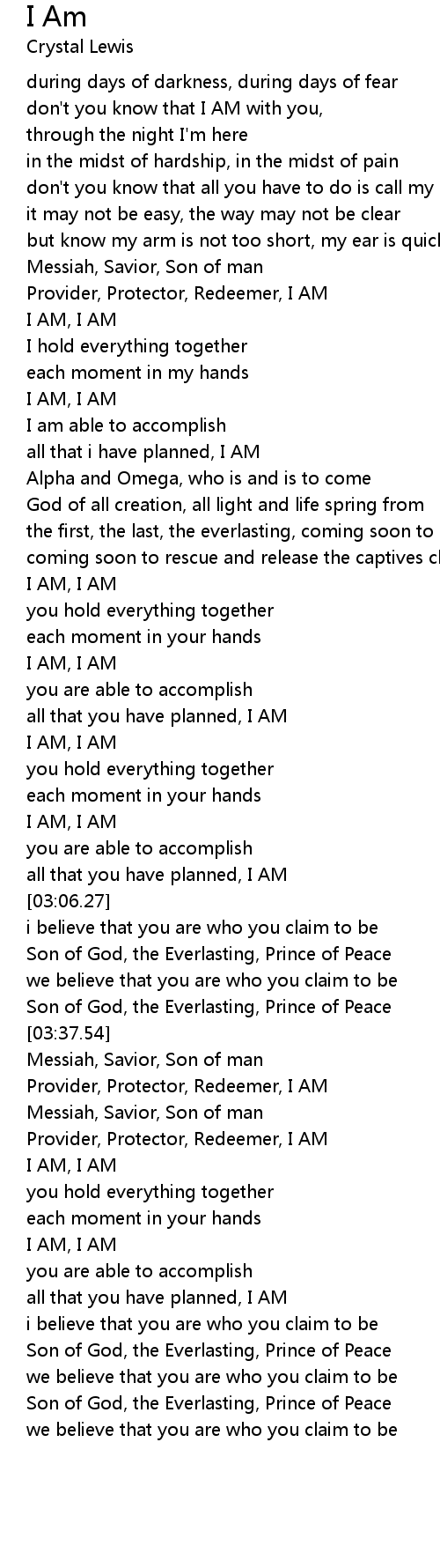 I AM, I AM |
