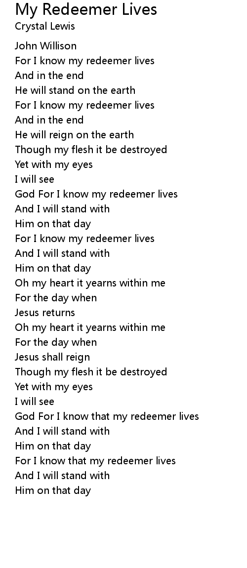 God For I know my redeemer lives |