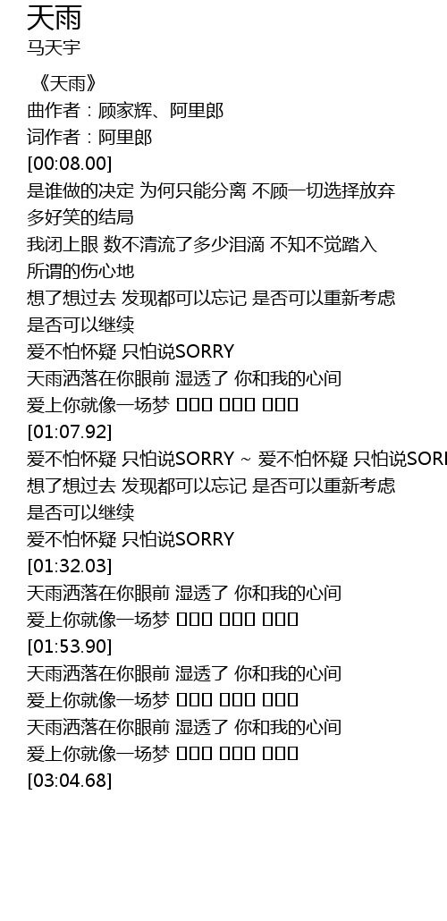 | [00:02.29] | 《天雨》 |